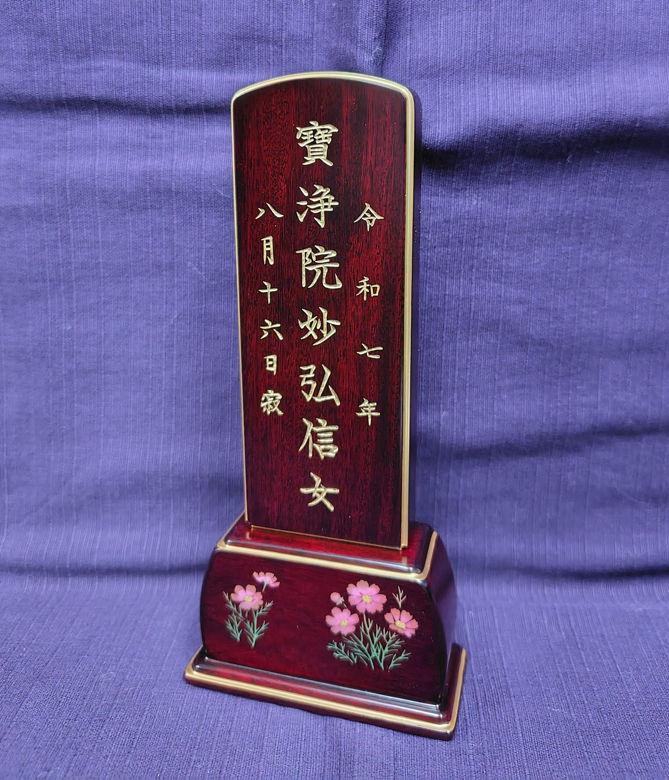 位牌:会津蒔絵位牌 四季彩(紫檀 透き漆) 秋桜柄