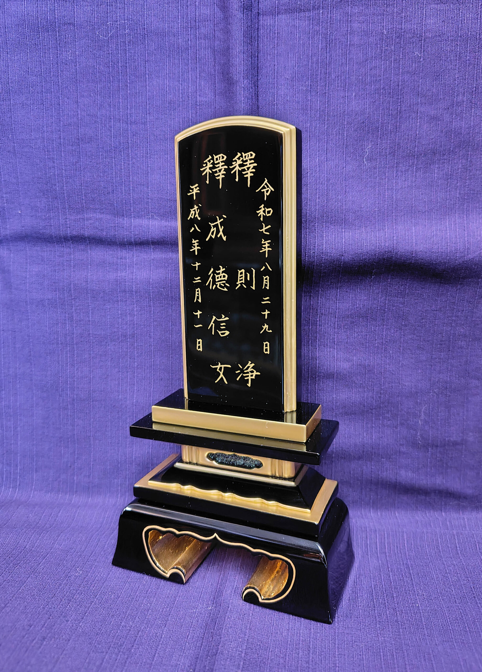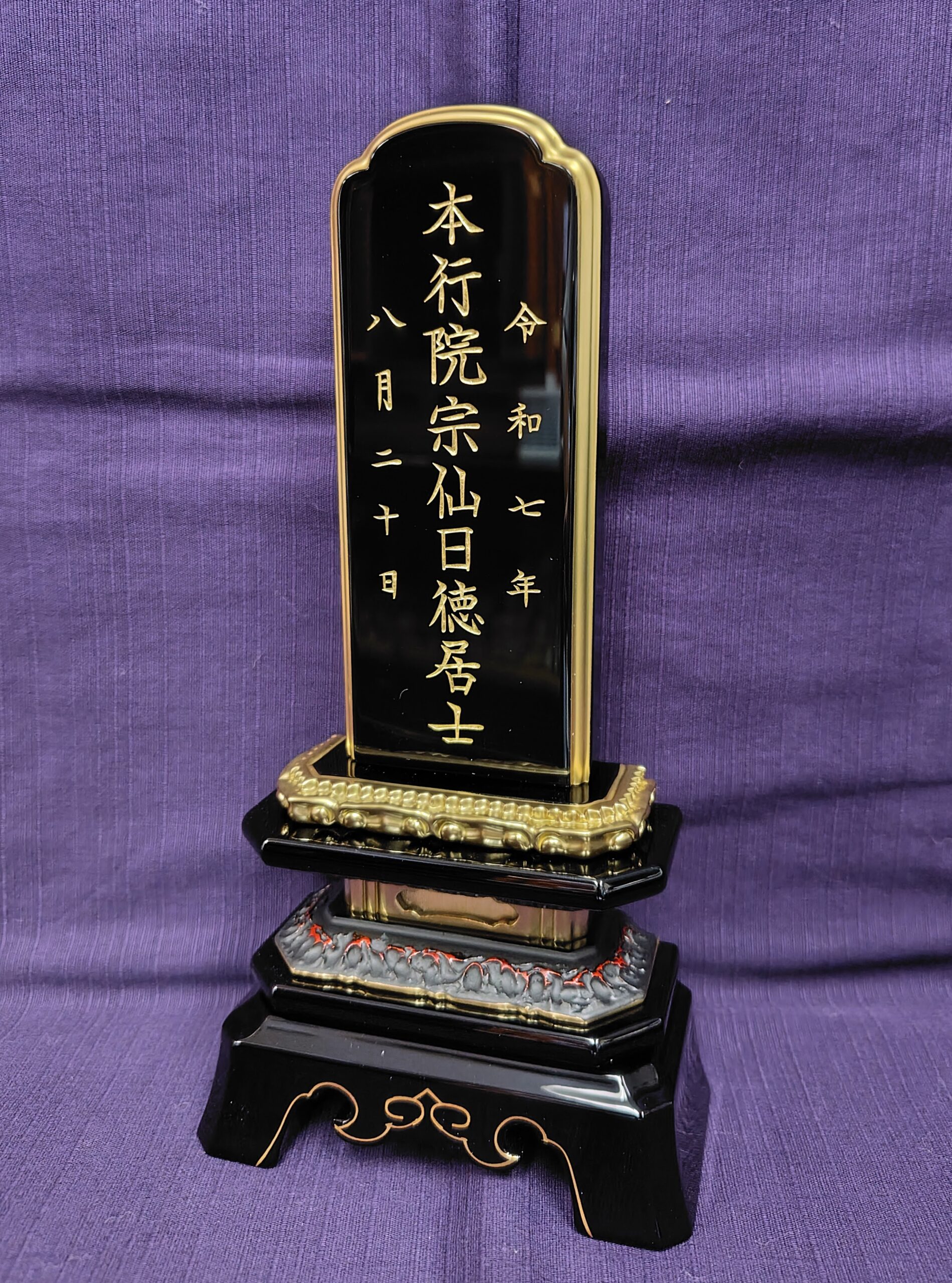 川崎市幸区のお客様からご依頼された国産会津漆塗り位牌の文字入れが完成致しました。