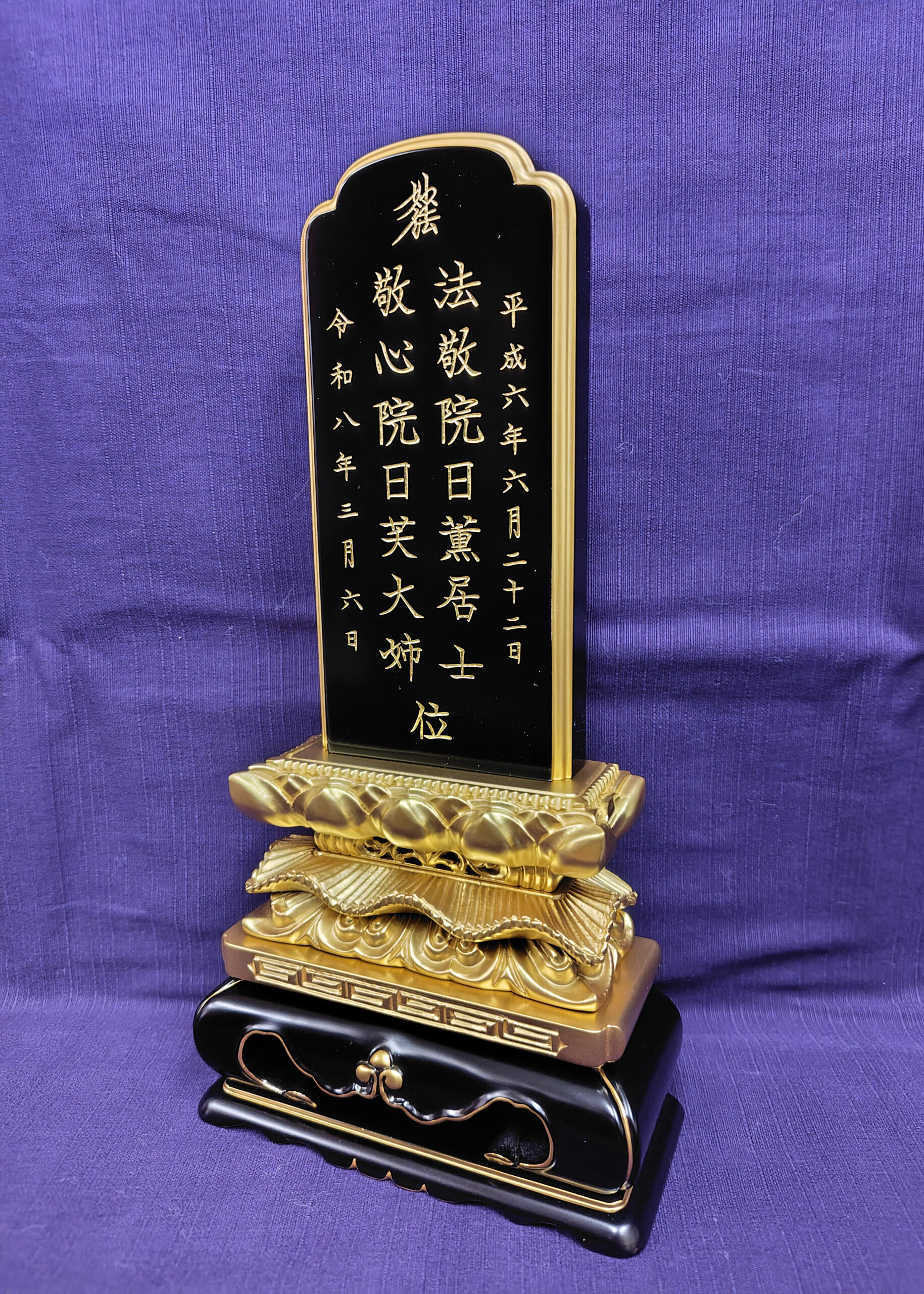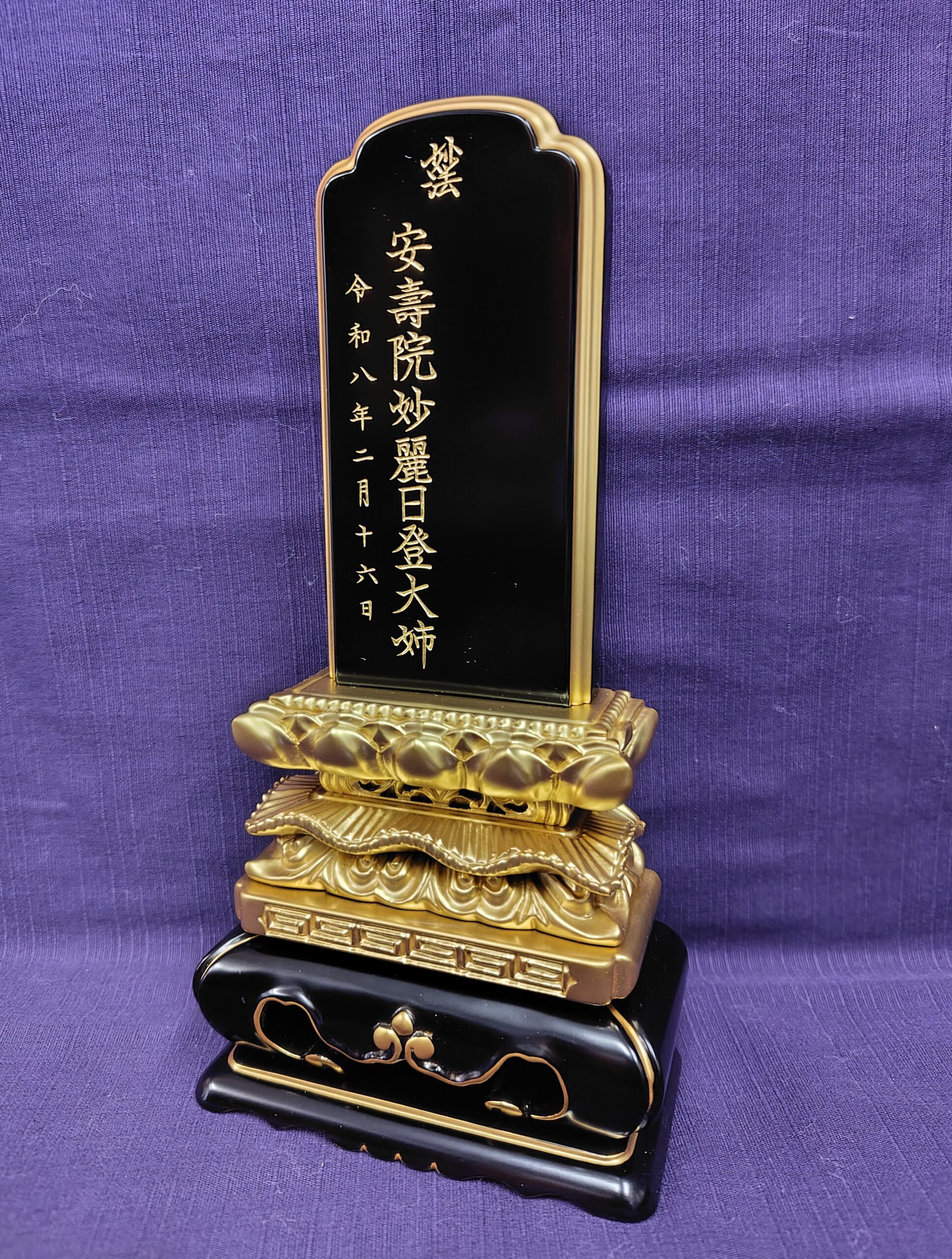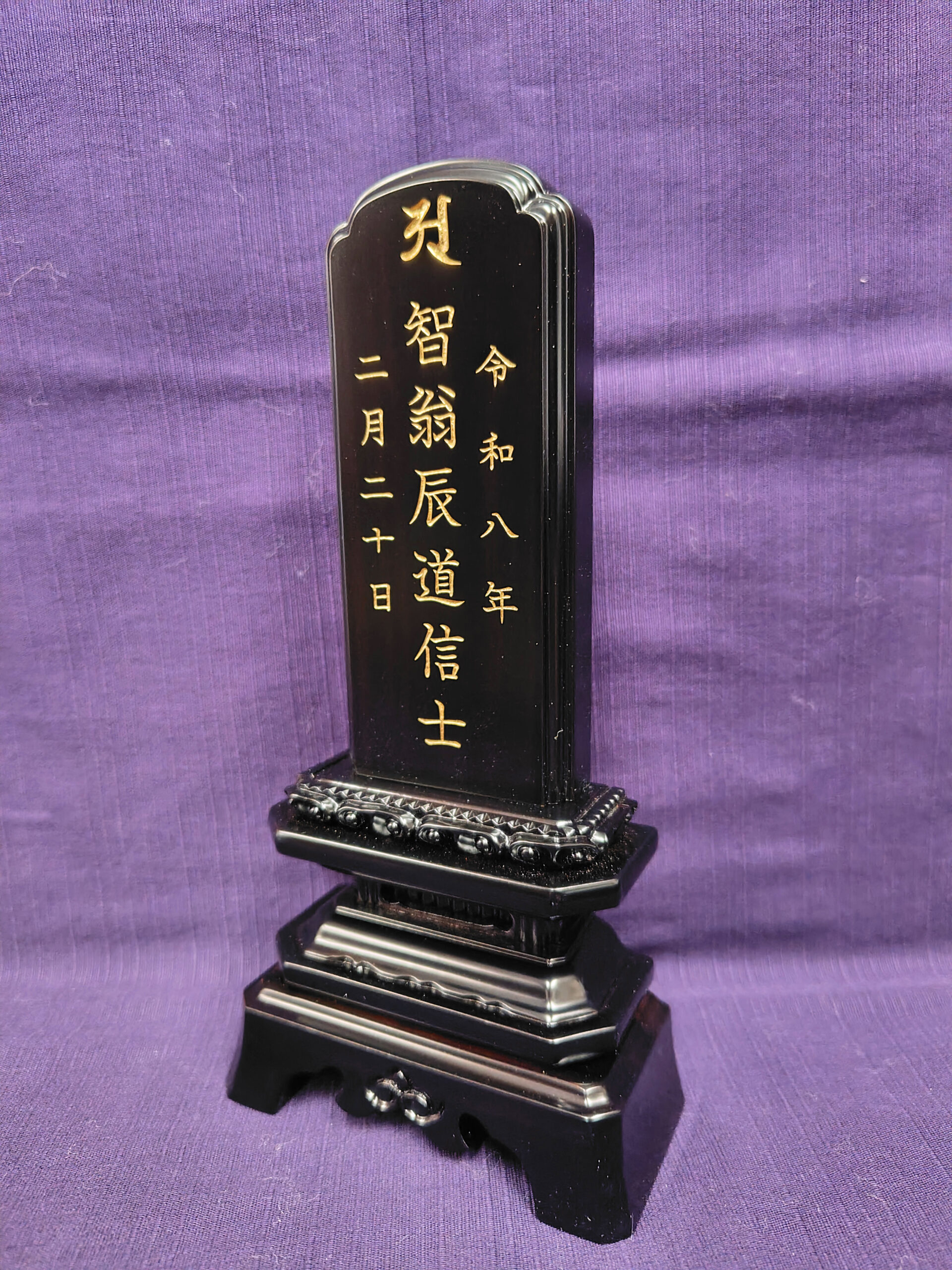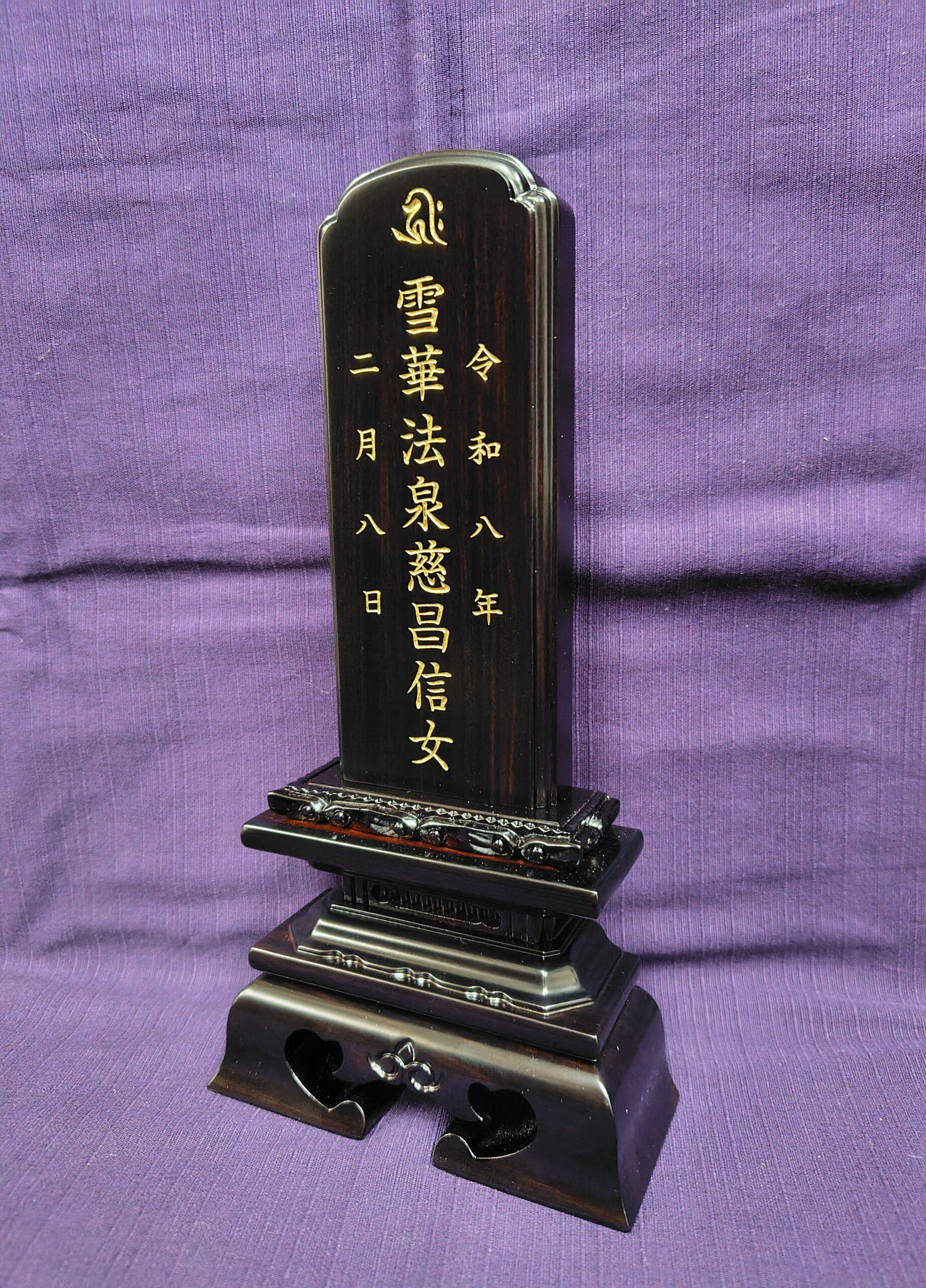 川崎市中原区のお客様からご依頼された国産会津漆塗りのお位牌の文字入れが完成致しました。