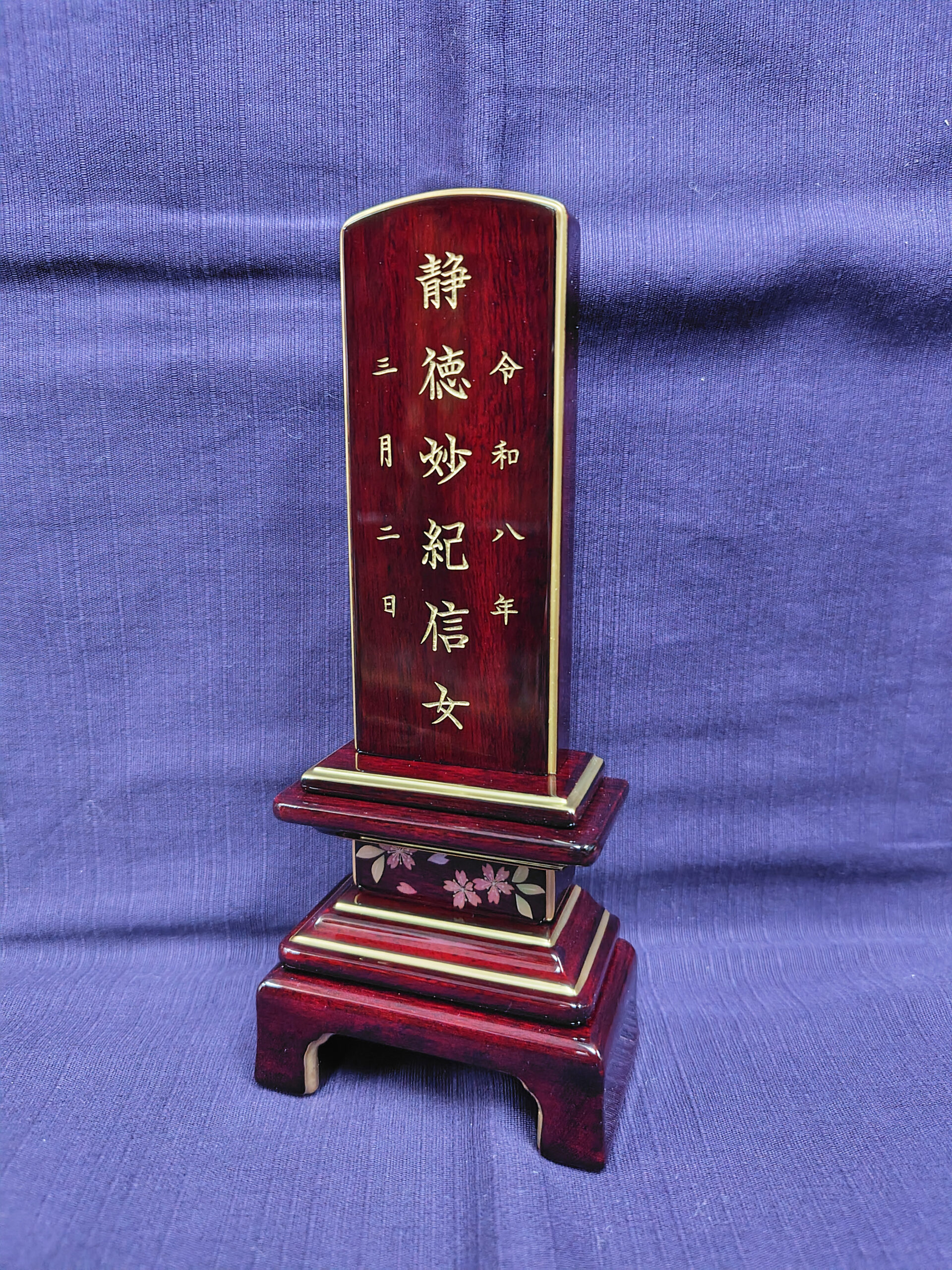 位牌:四季彩(紫檀 透き漆)桜柄 3.5寸
