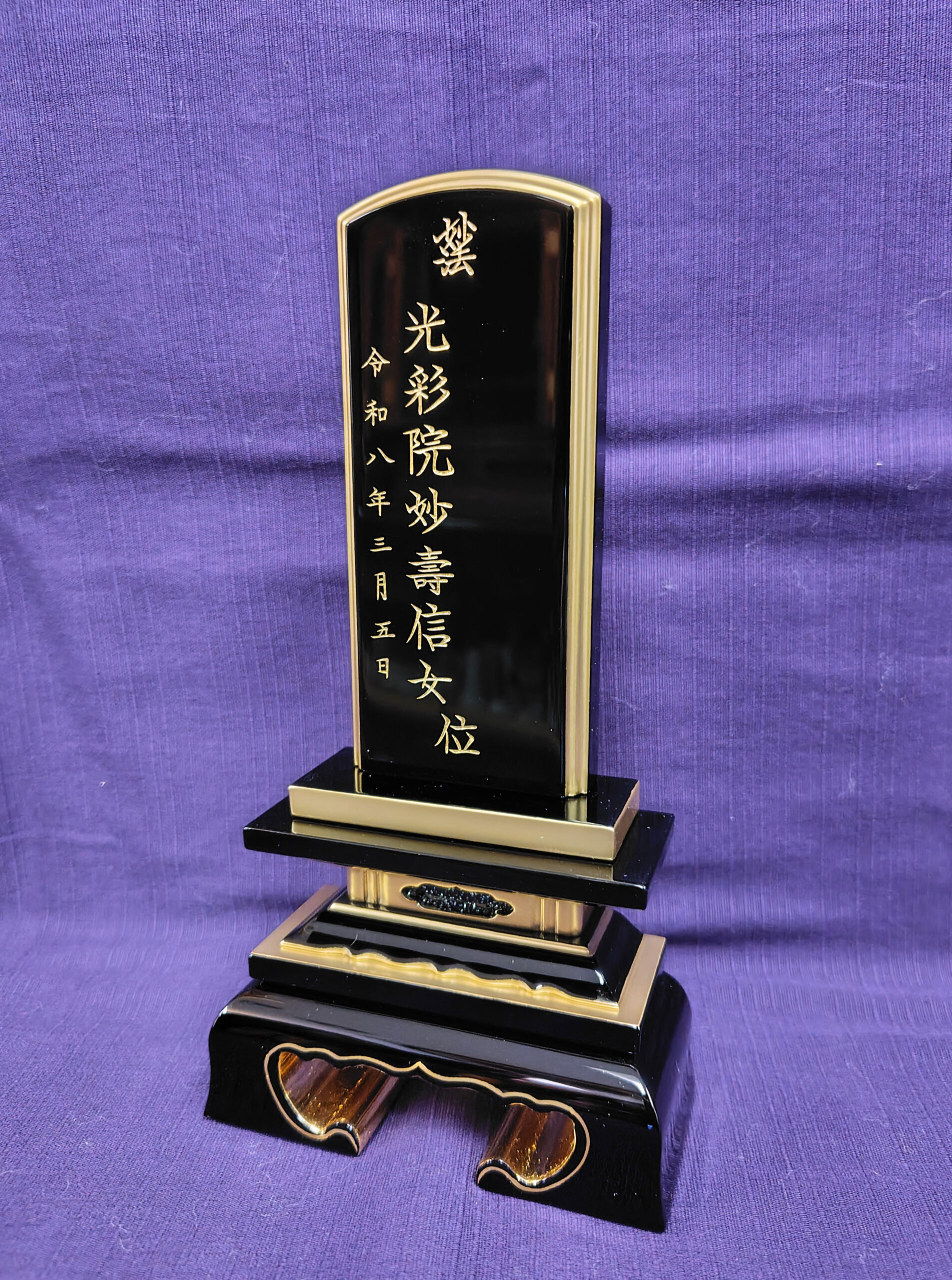 川崎市幸区のお客様からご依頼された国産会津漆塗りのお位牌の文字入れが完成致しました。