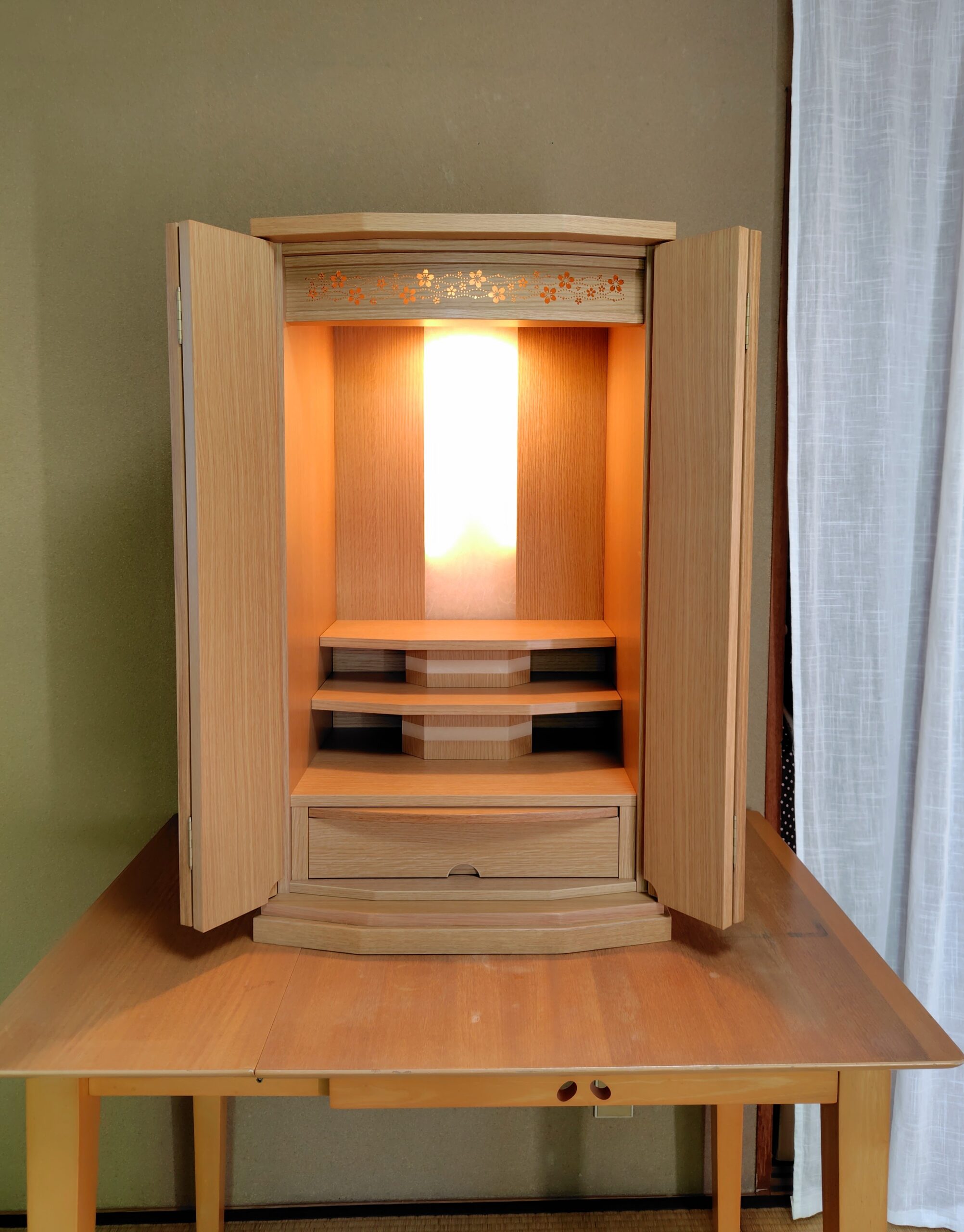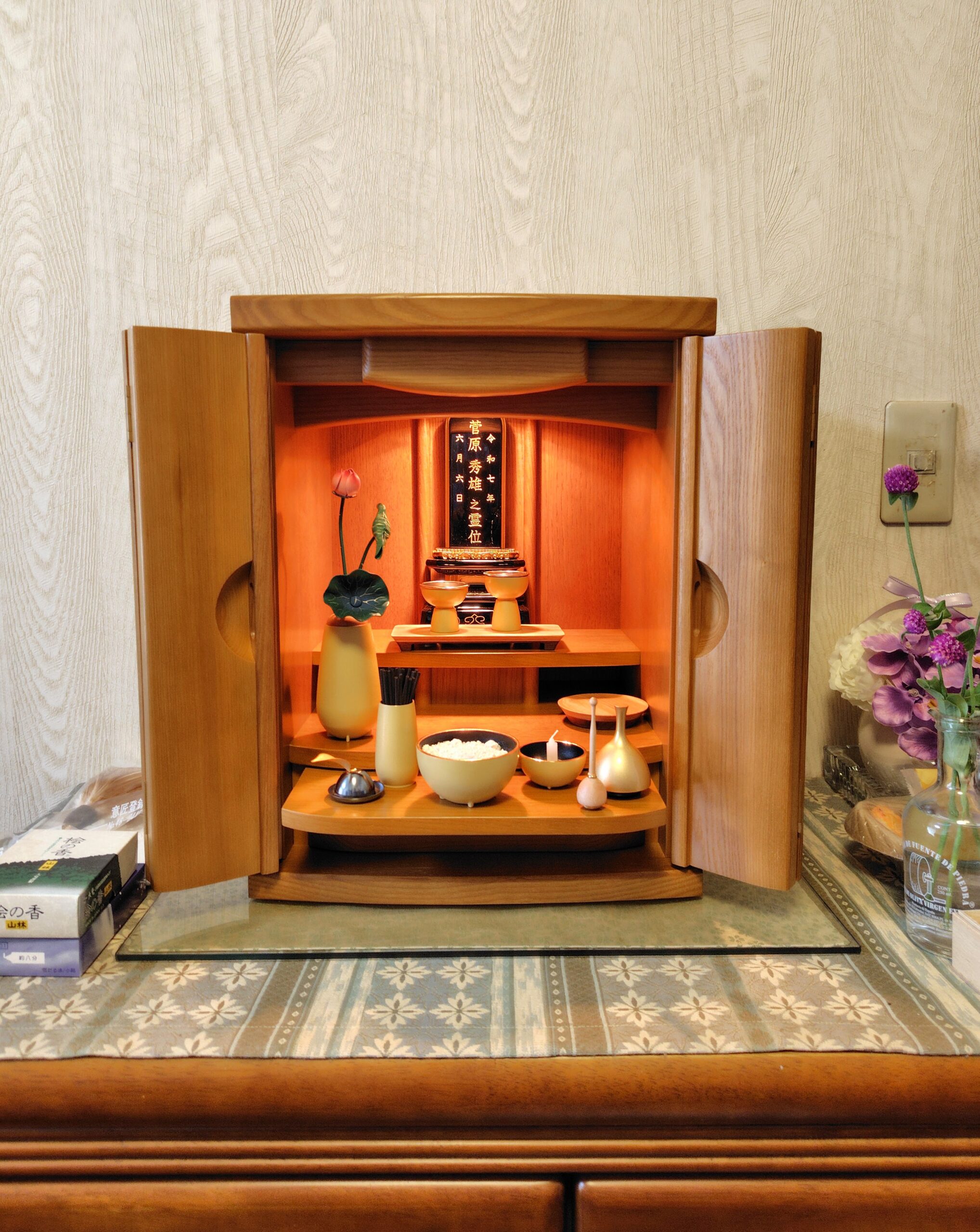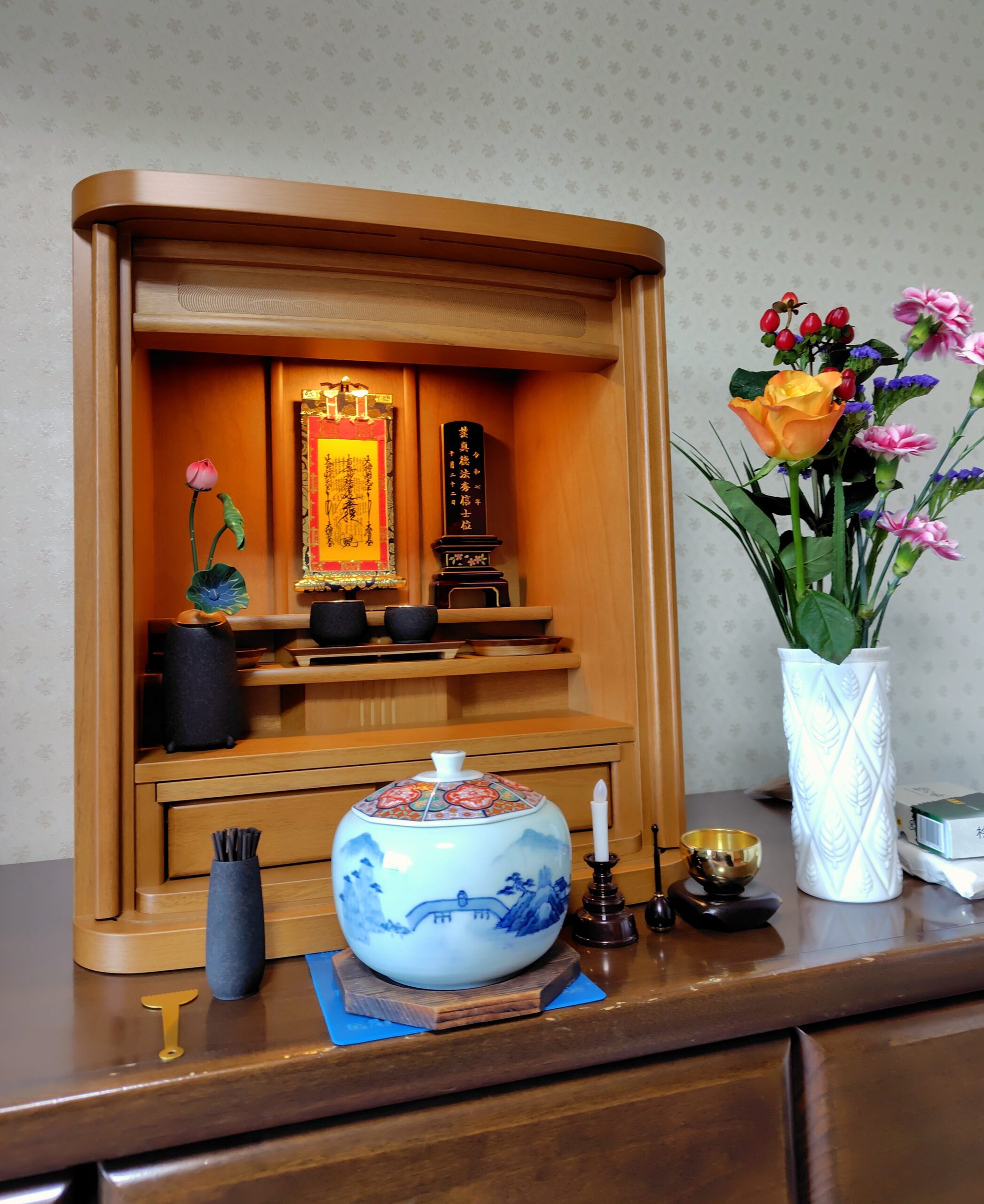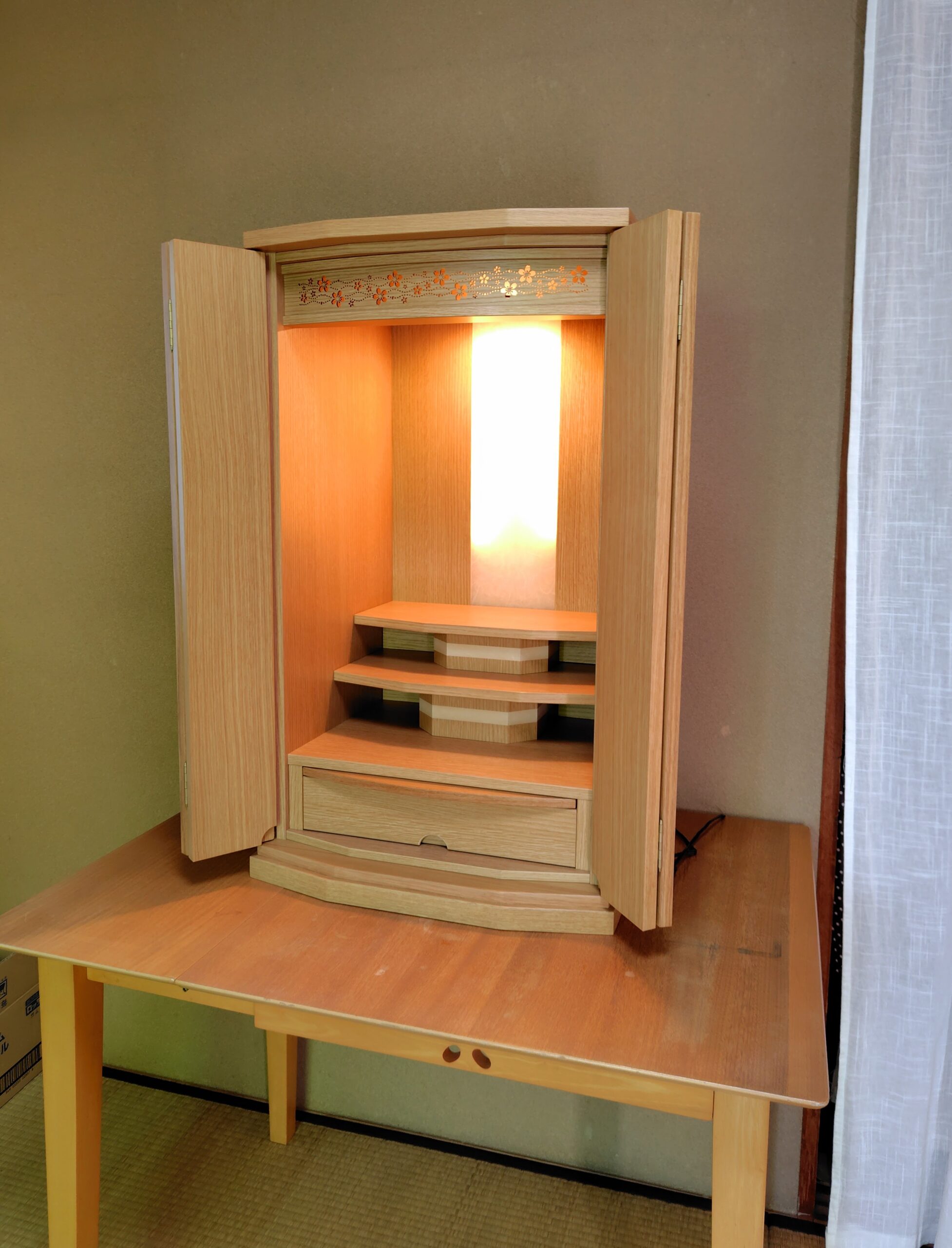 東京都練馬区のお客様のご自宅に国産モダン型上置き仏壇をお届けいたしました。