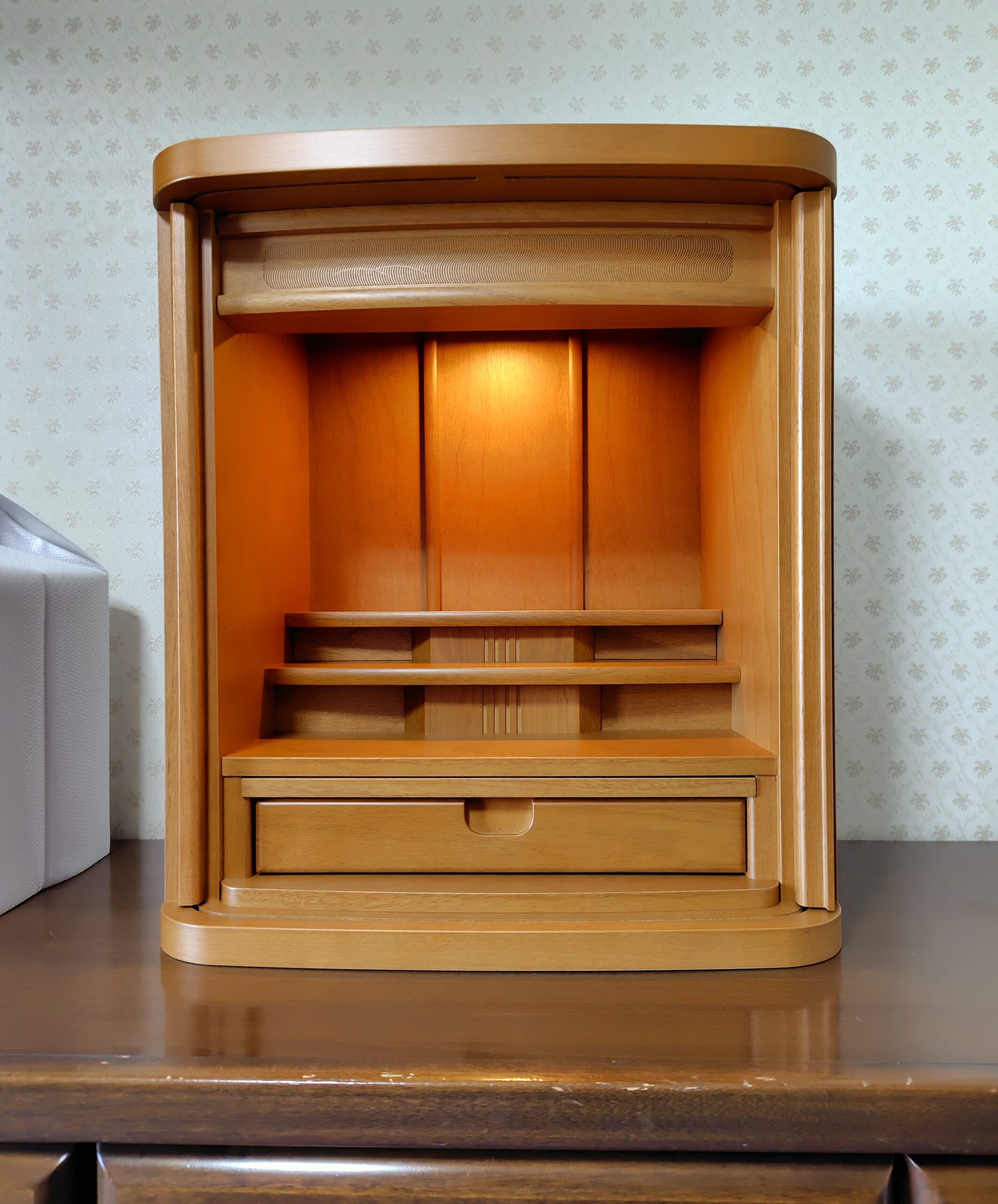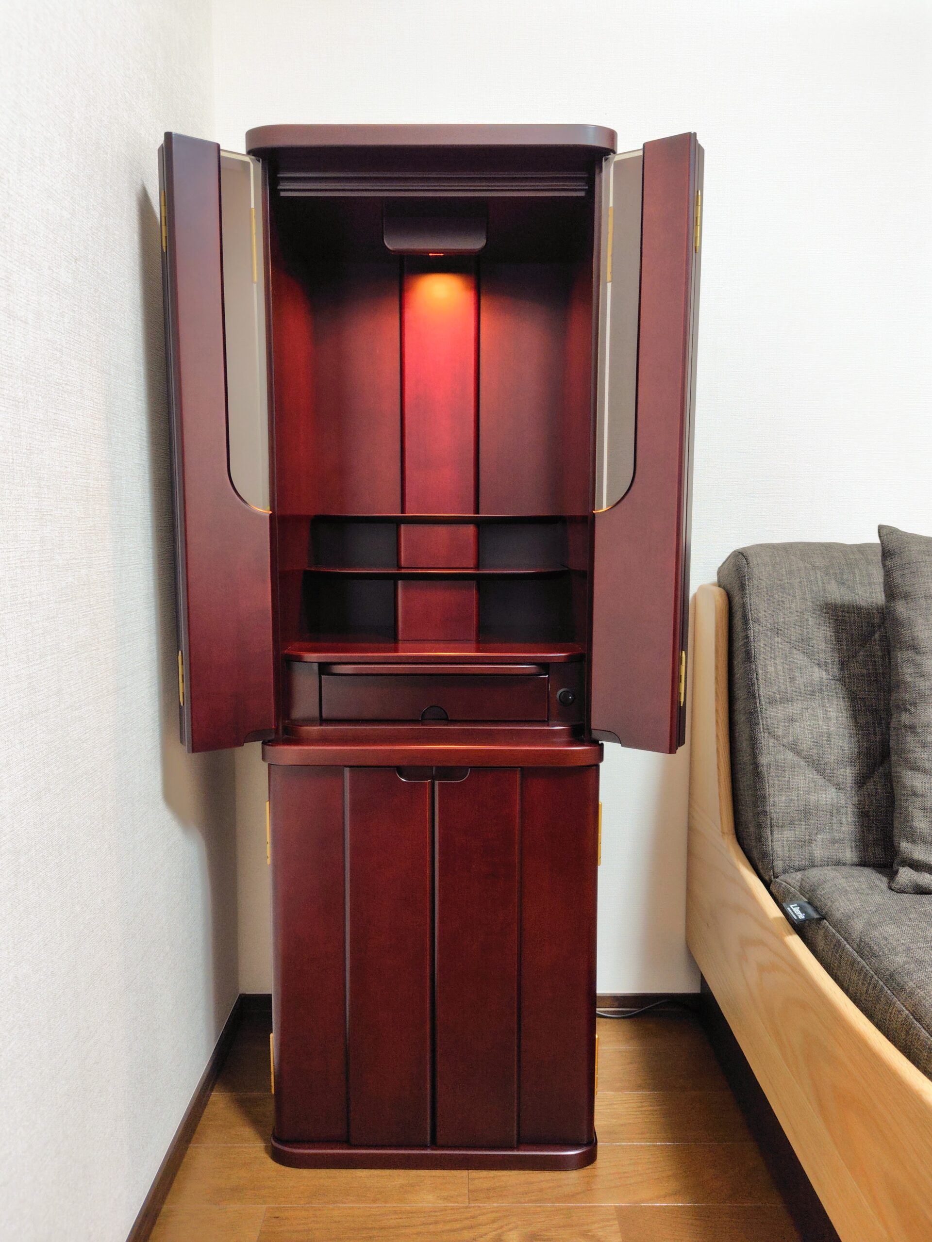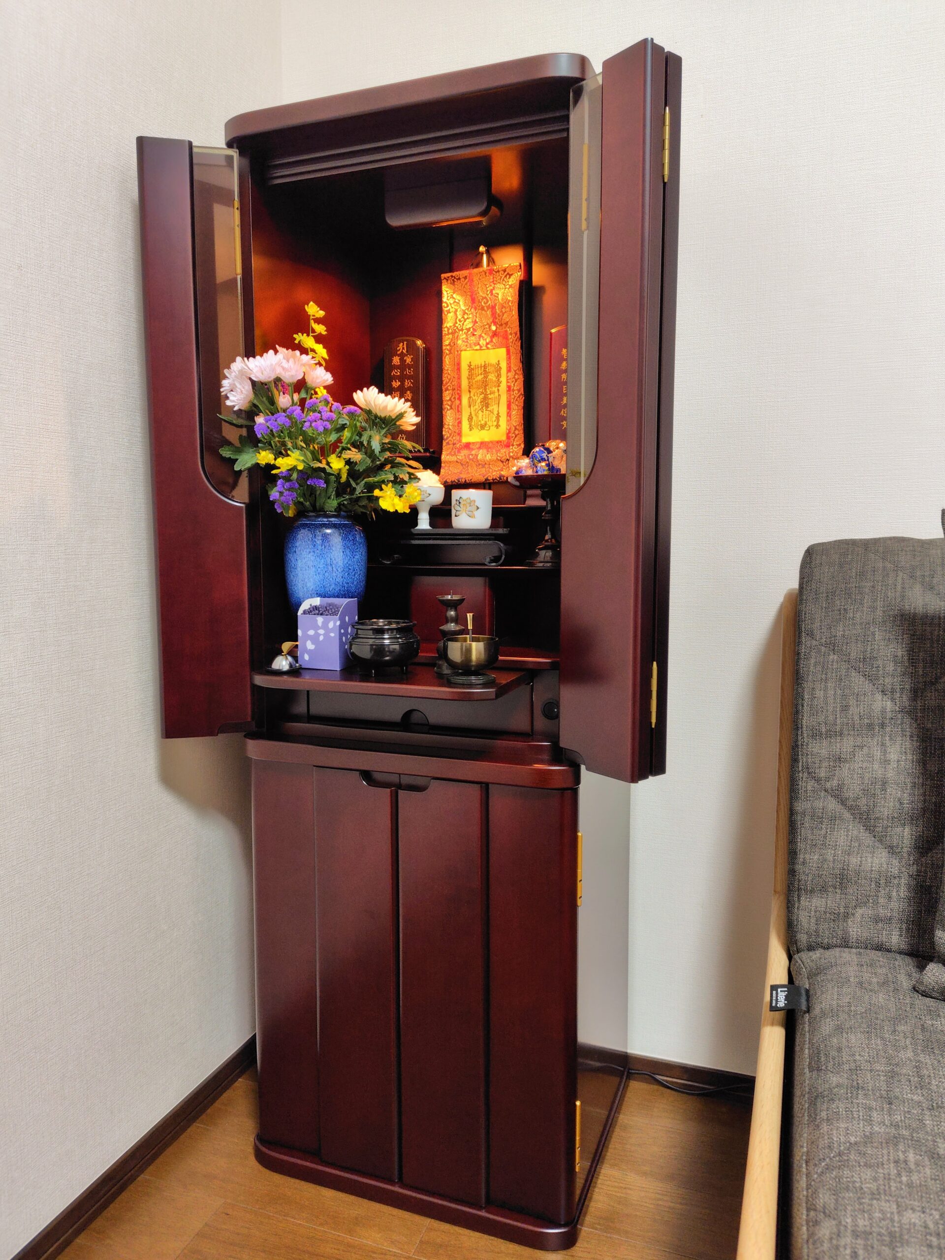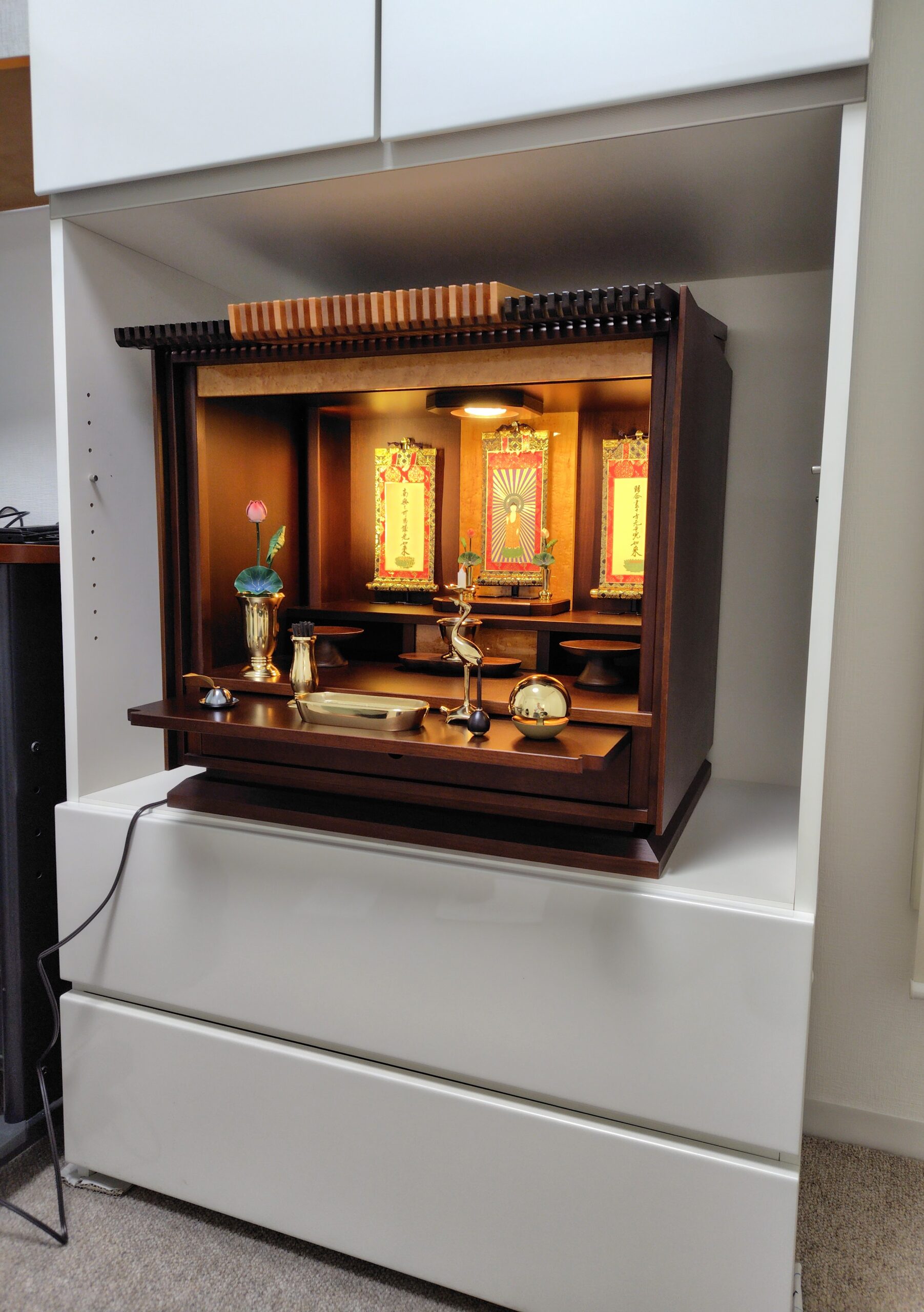 東京都練馬区のお客様のご自宅に国産モダン型上置き仏壇をお届けいたしました。