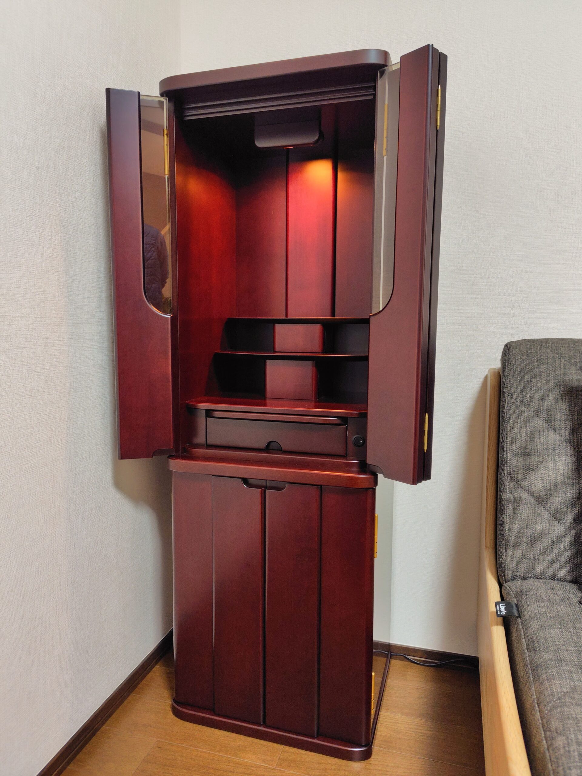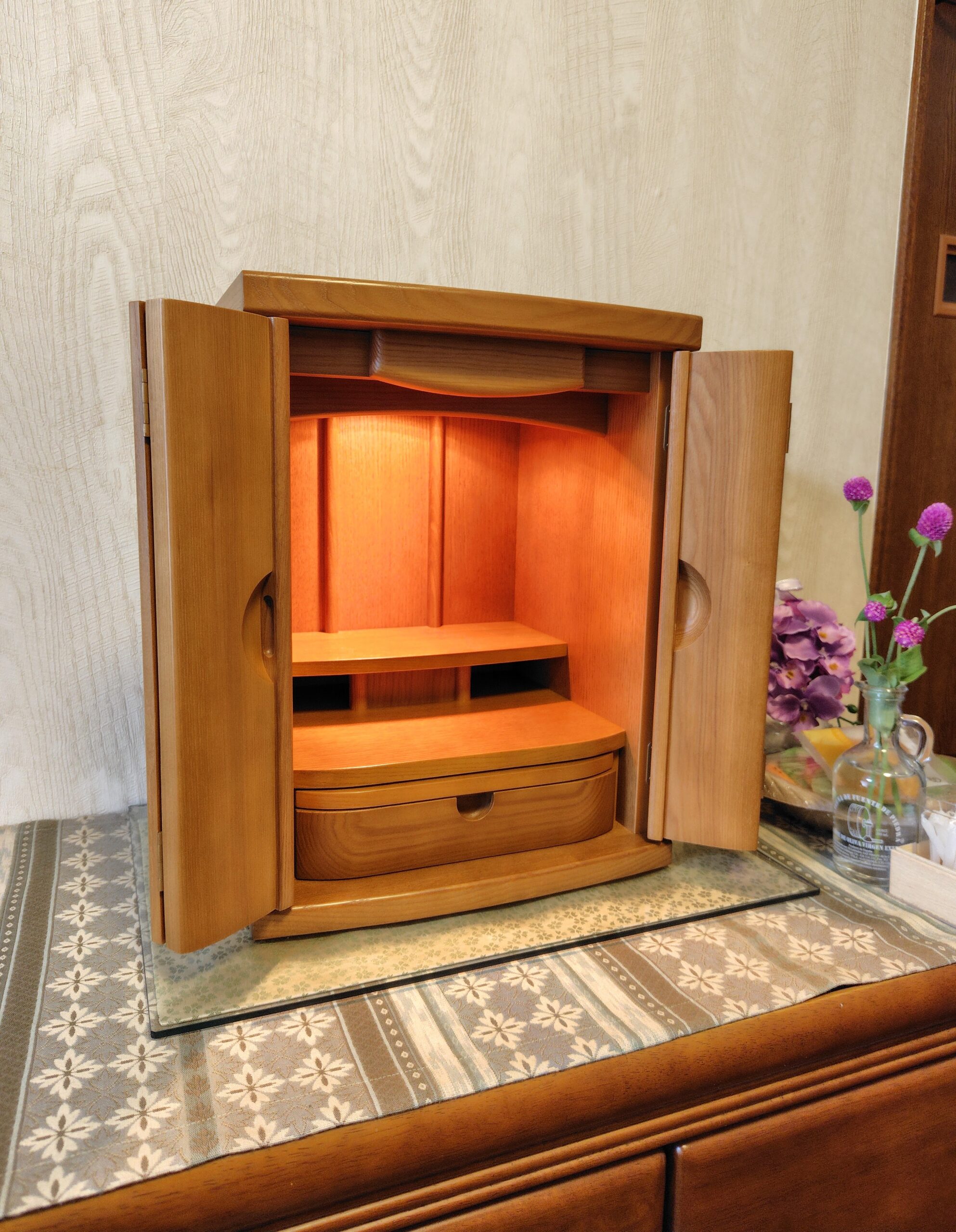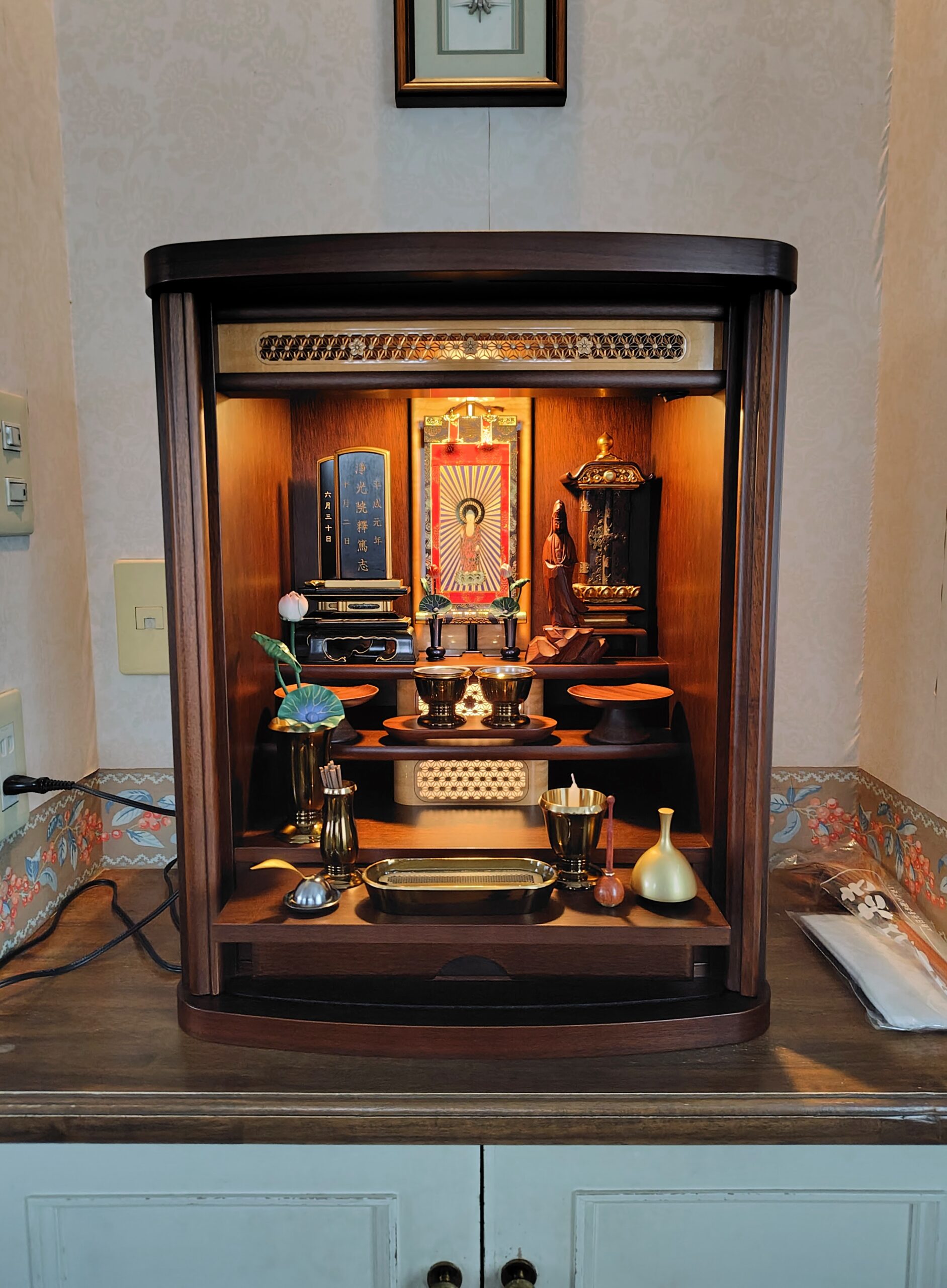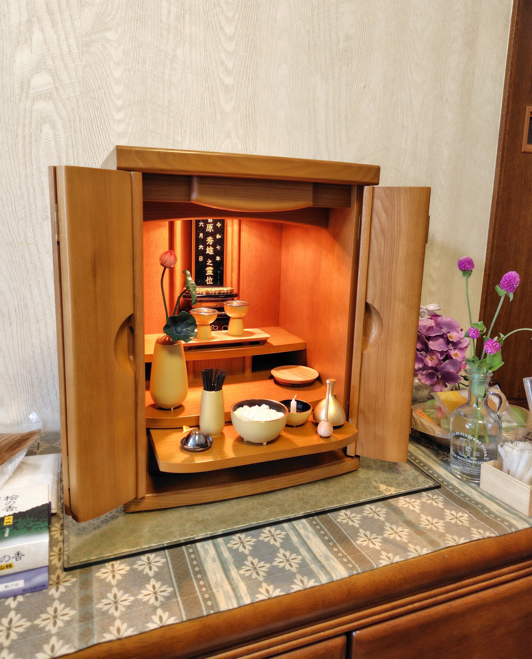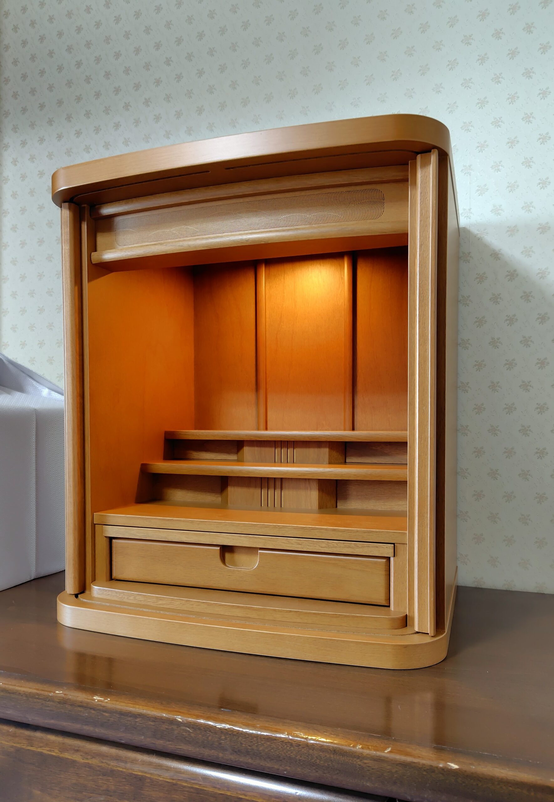 東京都練馬区のお客様のご自宅に国産モダン型上置き仏壇をお届けいたしました。