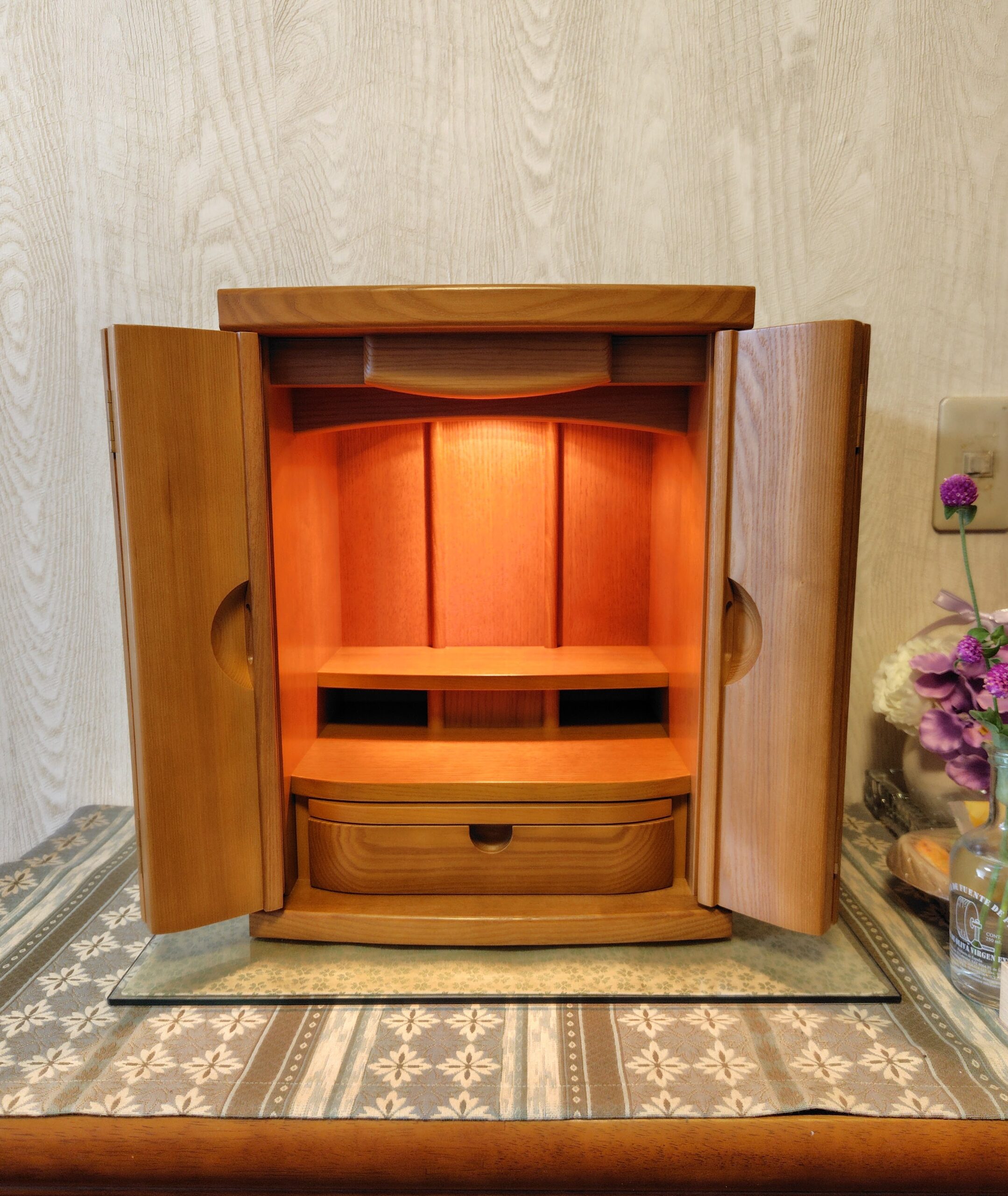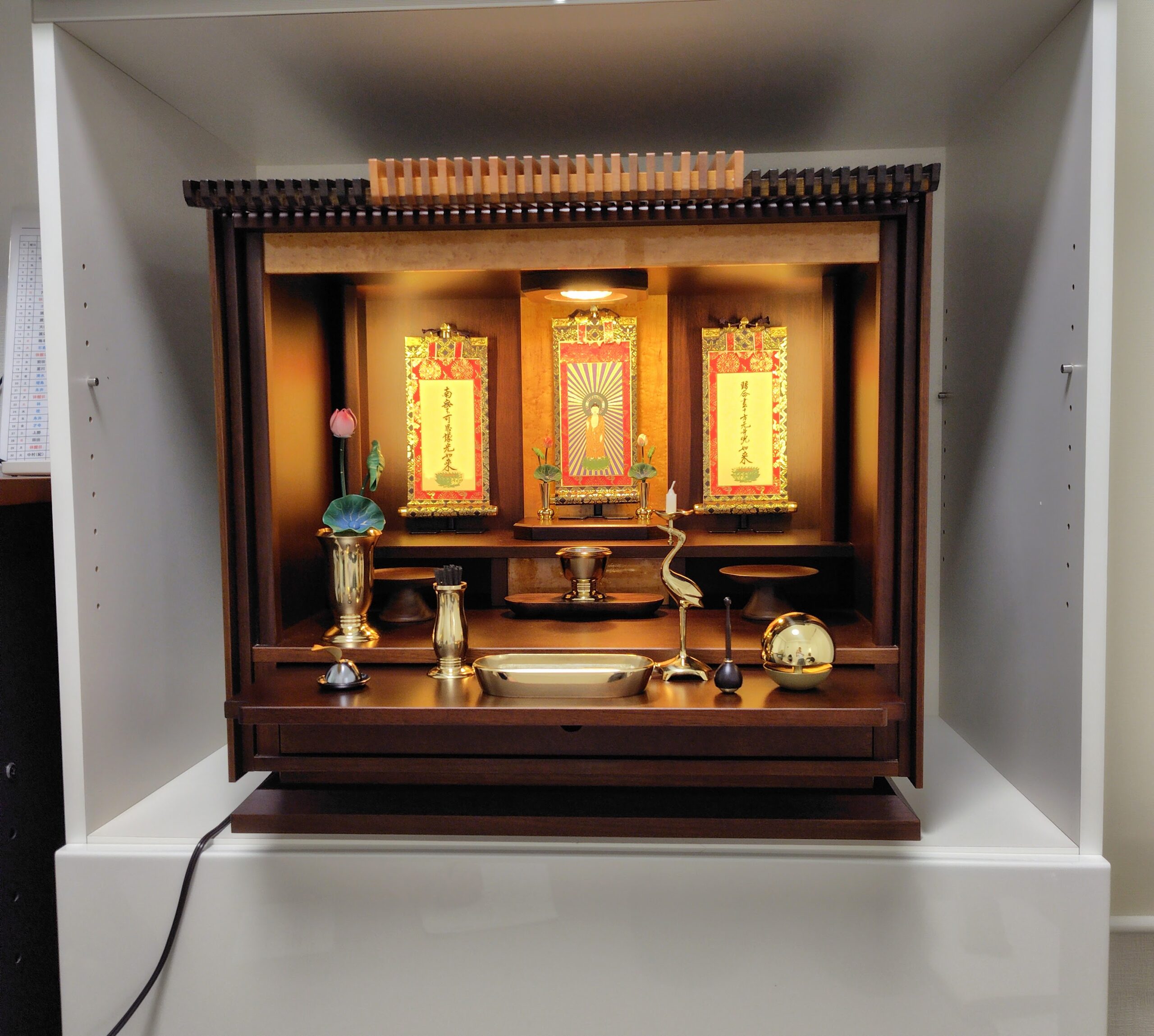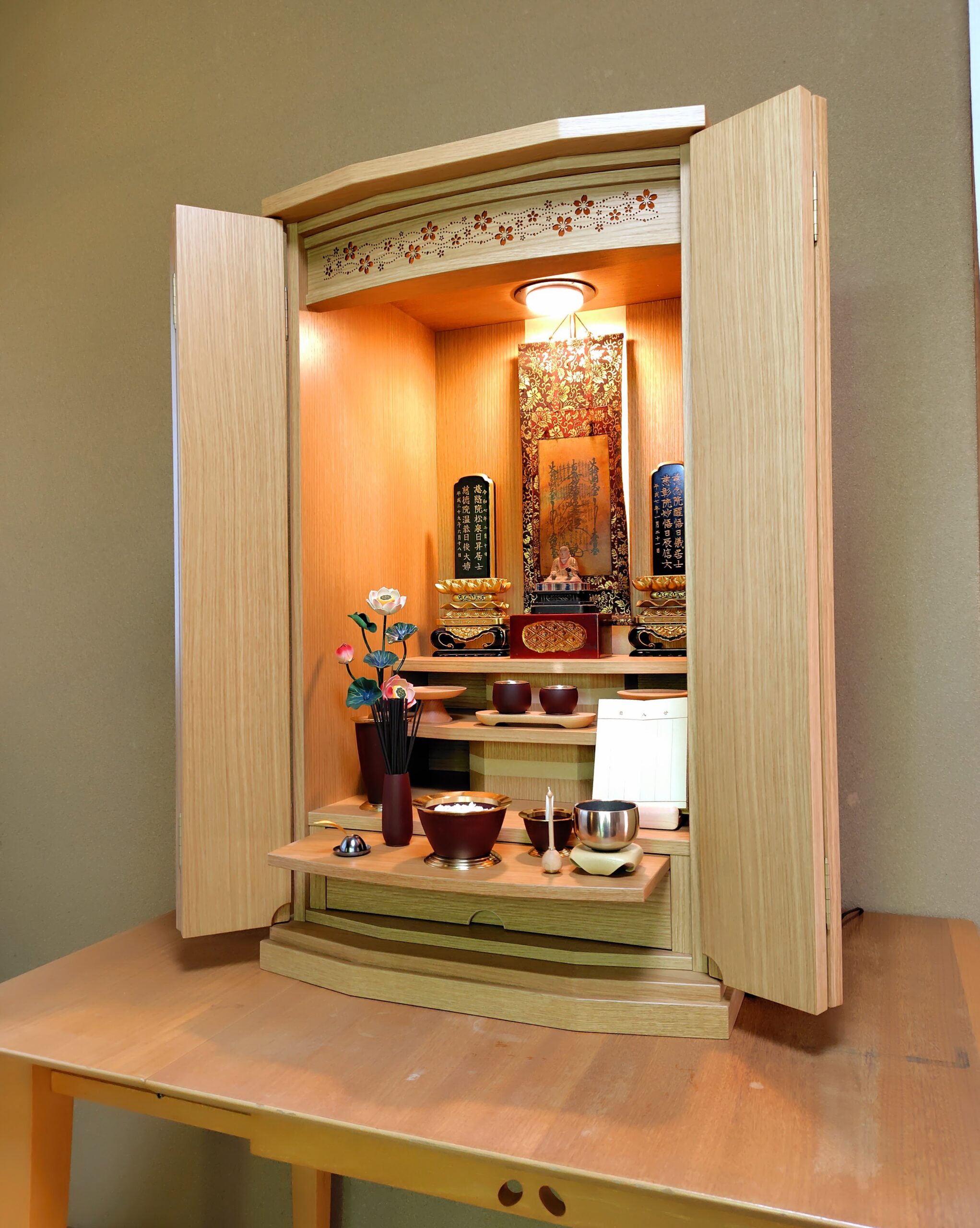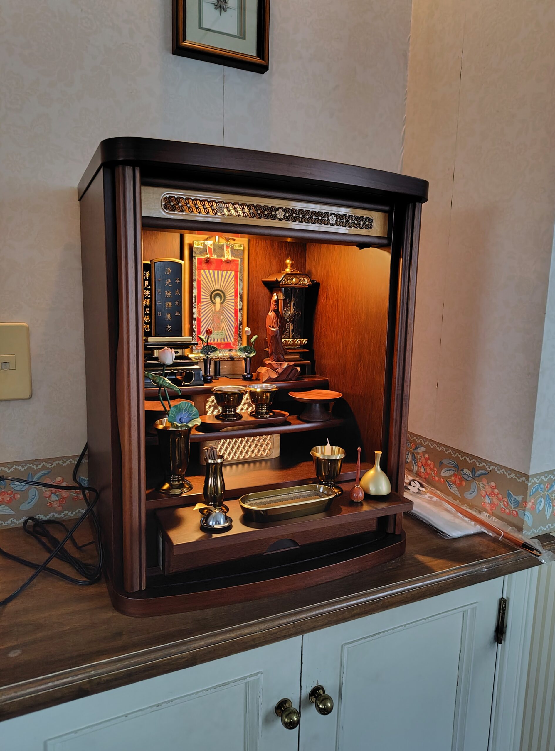 東京都練馬区のお客様のご自宅に国産モダン型上置き仏壇をお届けいたしました。