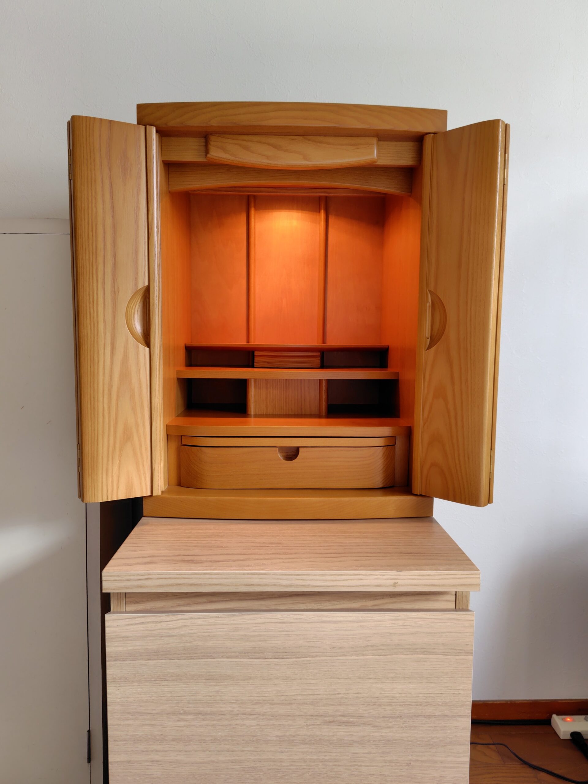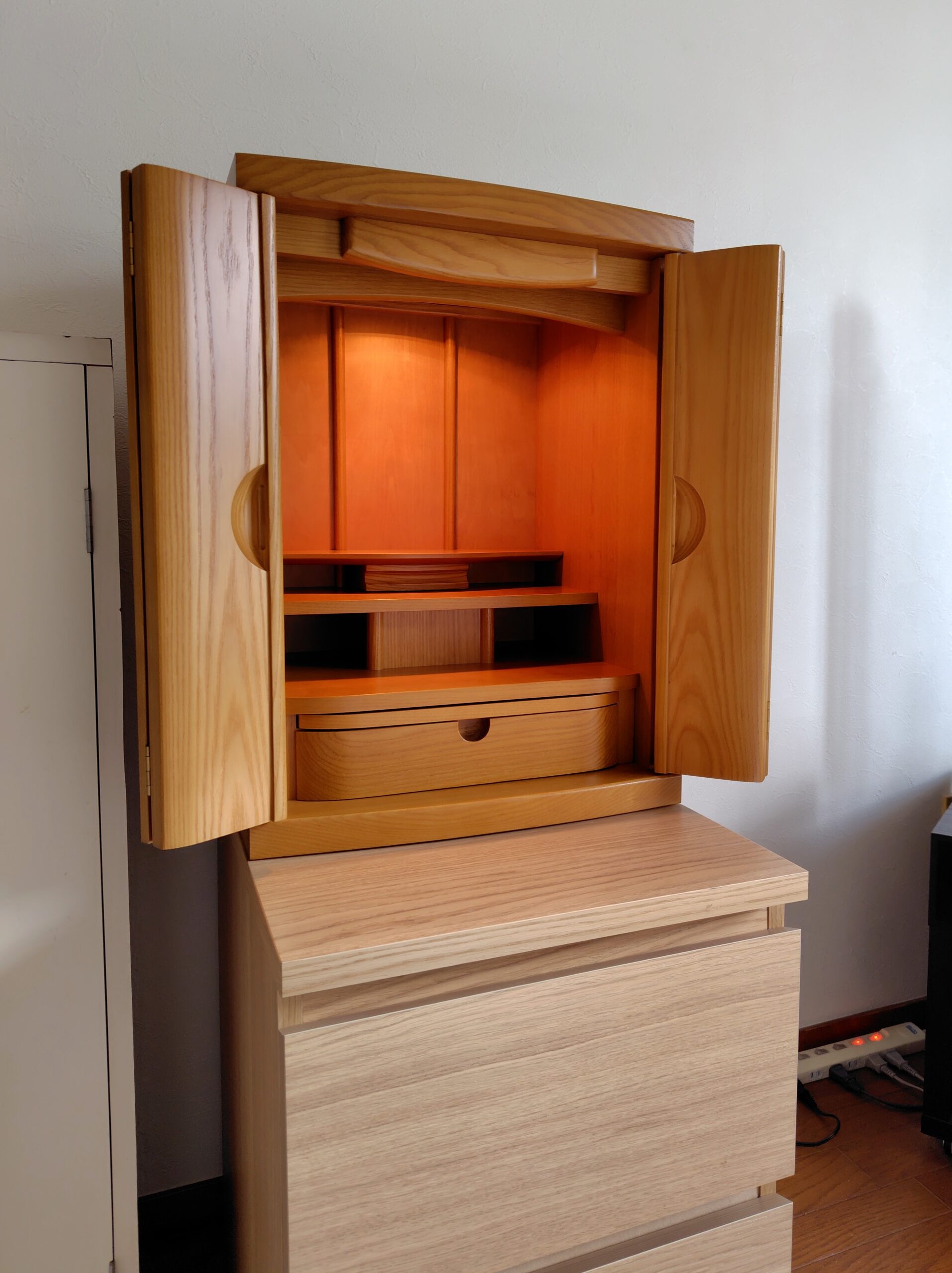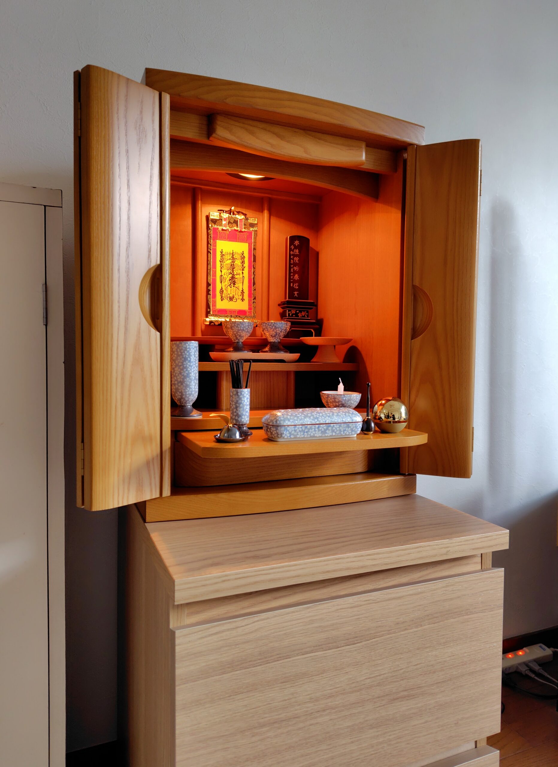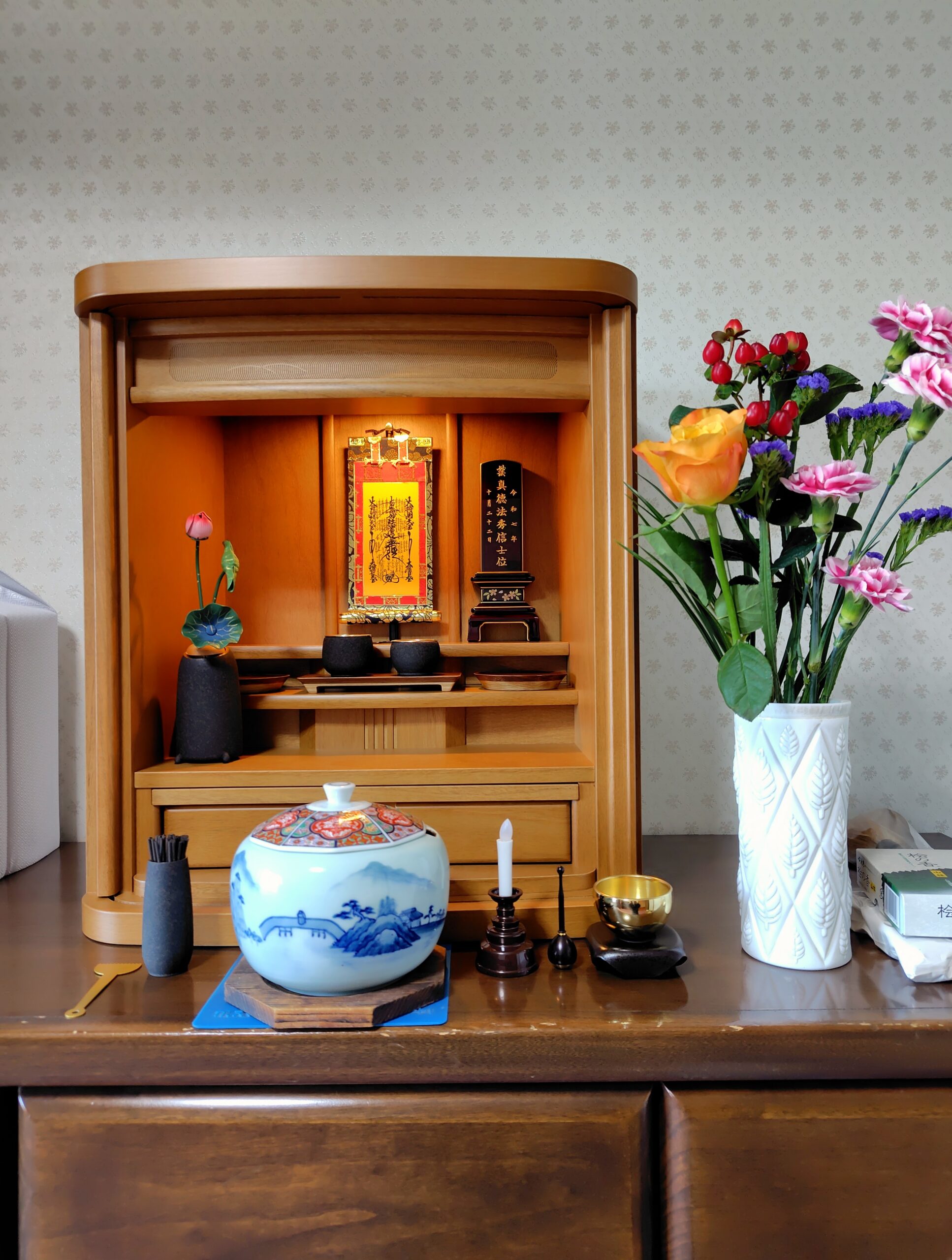 東京都練馬区のお客様のご自宅に国産モダン型上置き仏壇をお届けいたしました。