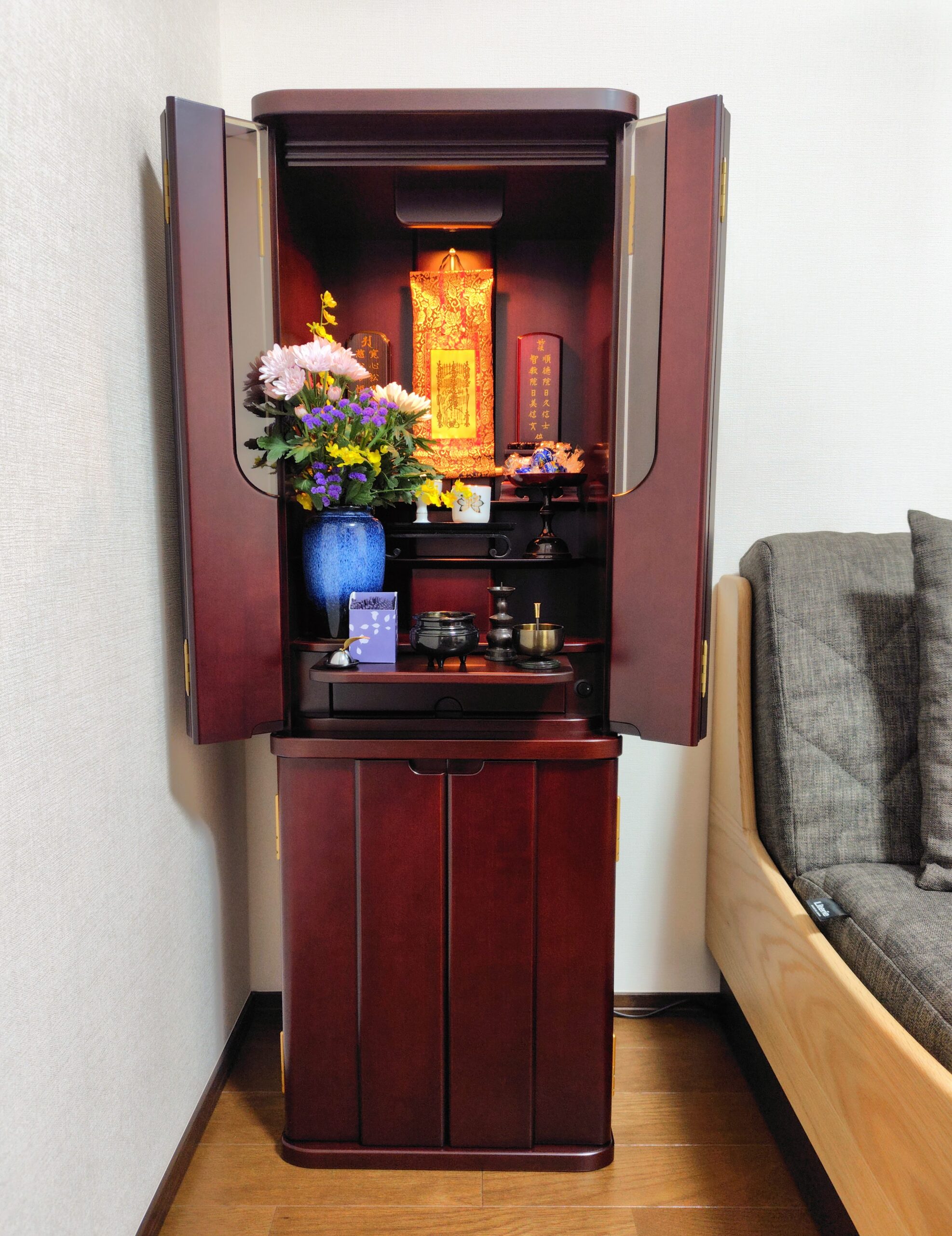 川崎市幸区のお客様のご自宅に国産モダン型上置き仏壇をお届けいたしました。